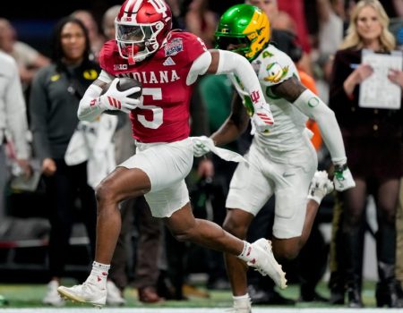 Indiana dominated on its way to a 56-22 win over Oregon in the Peach...